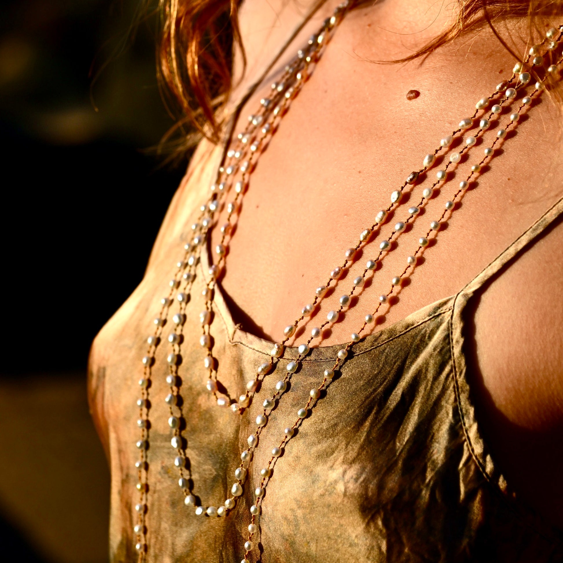 These resplendent darlings of the sea are hand-knotted in true island form of a welcome lei, and can be worn as a soothing embrace of our mother ocean. Features luminous Keshi Pearls with notable luster.
