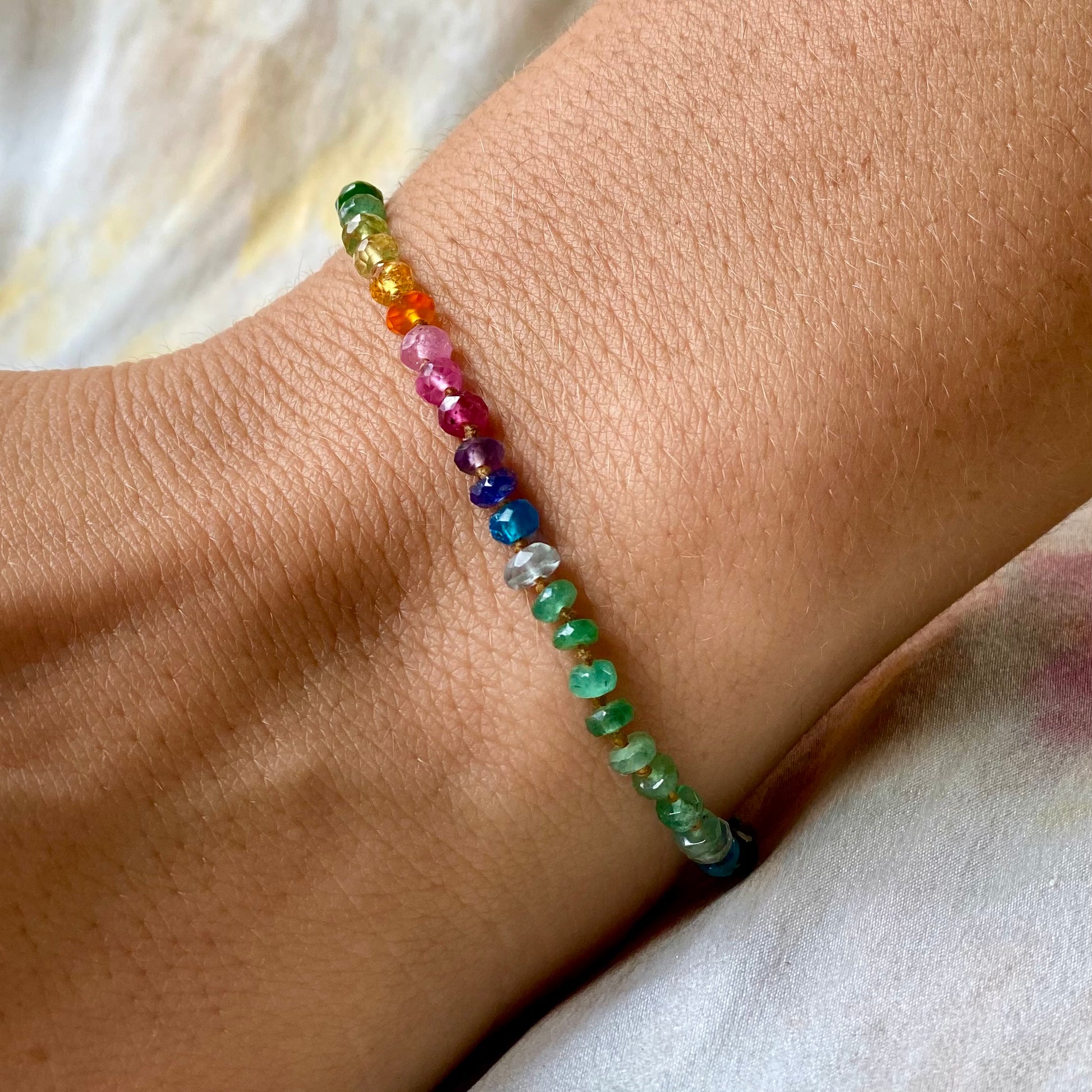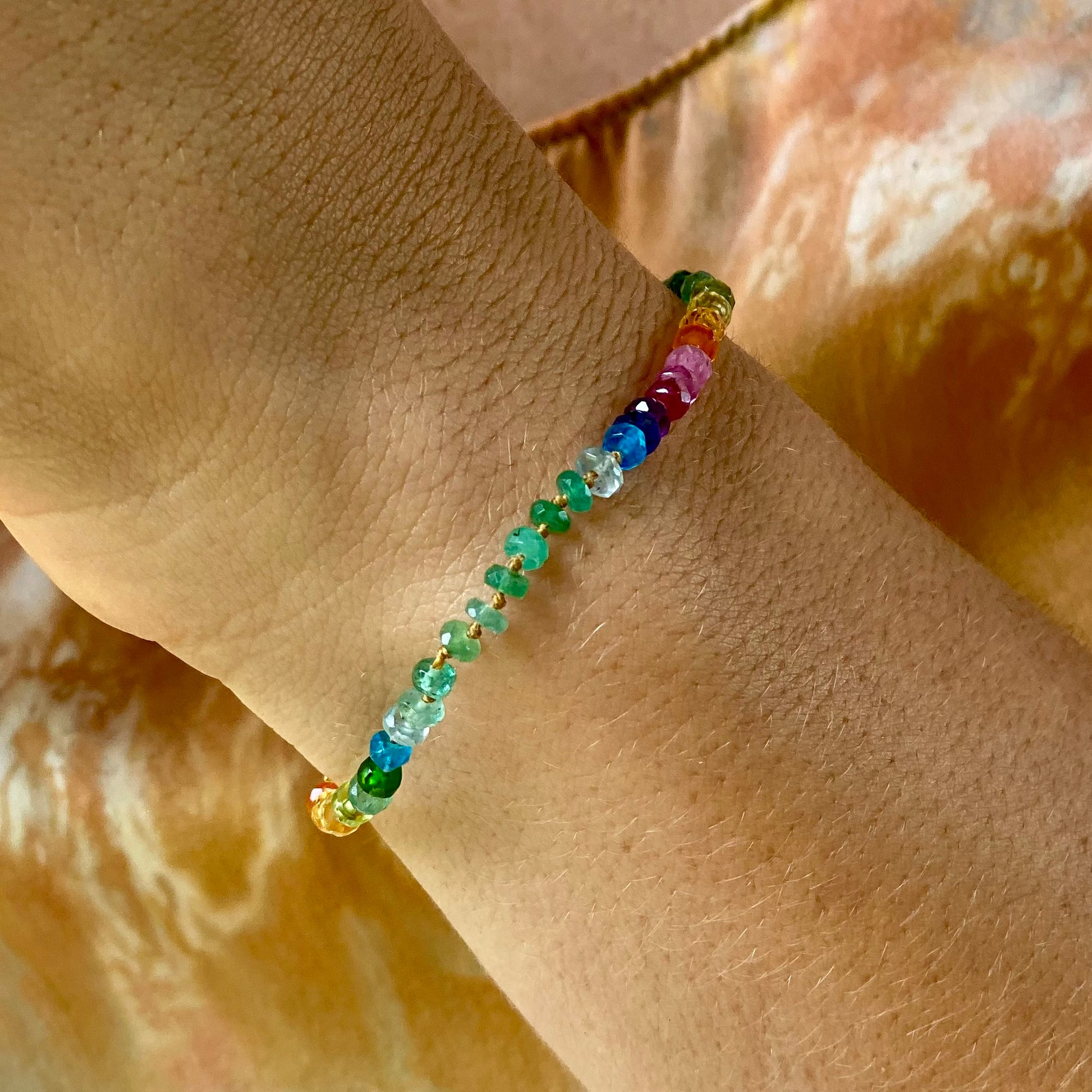 Rainbow Sequence: Apatite, Amethyst, Ruby, Carnelian, Yellow Sapphire, and Emerald.